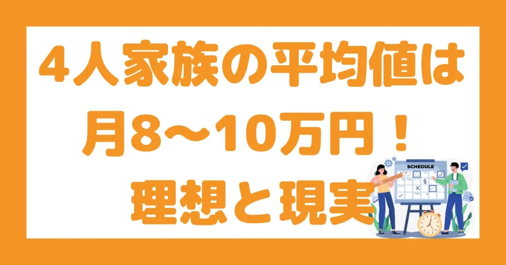 4人家族の平均的な食費は月8〜10万円程度とされており、目標の5万円とは大きな差があります。