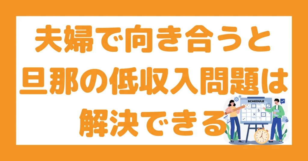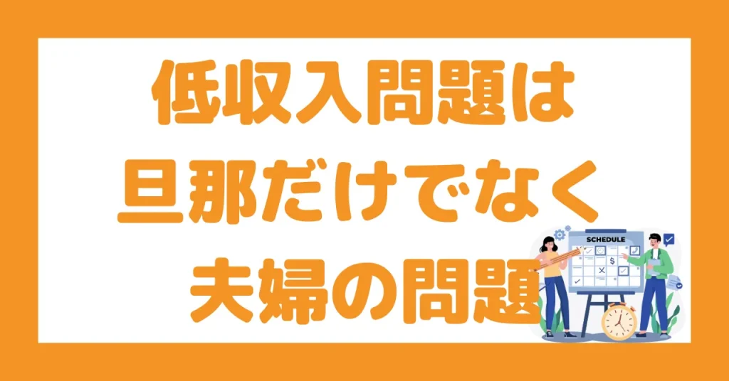 「旦那の低収入」という数値だけに注目するのではなく、夫婦の“役割認識・価値観・負担の分担”を改善できないと、どれだけ収入が上がっても“また同じ悩み”に戻る可能性があります。
